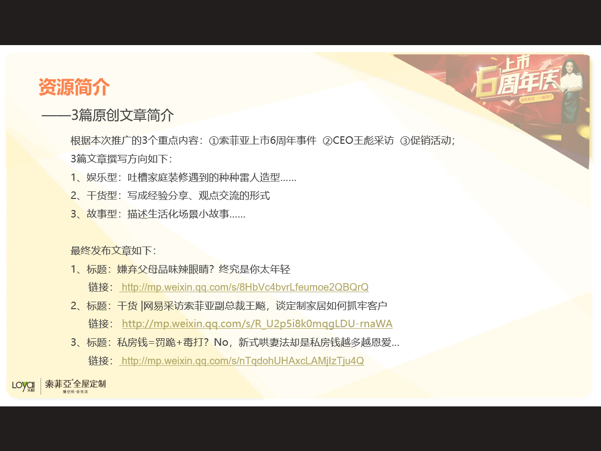 为索菲亚上市6周年造势,同时推广该事件促销活动,以达到广而告之的目的,从而提升品牌知名度和影响力。